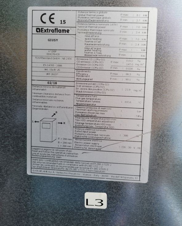 Poêle a granule de marque EXTRAFLAME ref: GIUSY de 2021, très peux servie (7moi) avec 2 sacs de granule.