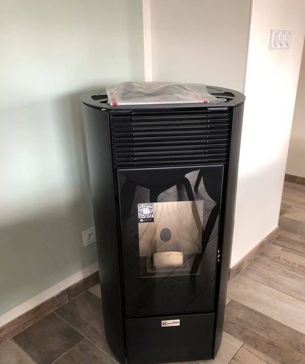 Poêle 10,8 kw hermetica amg, canalisable et programmable. Idéal pour chauffer une maison de 100 m2. Fabrication italienne.
